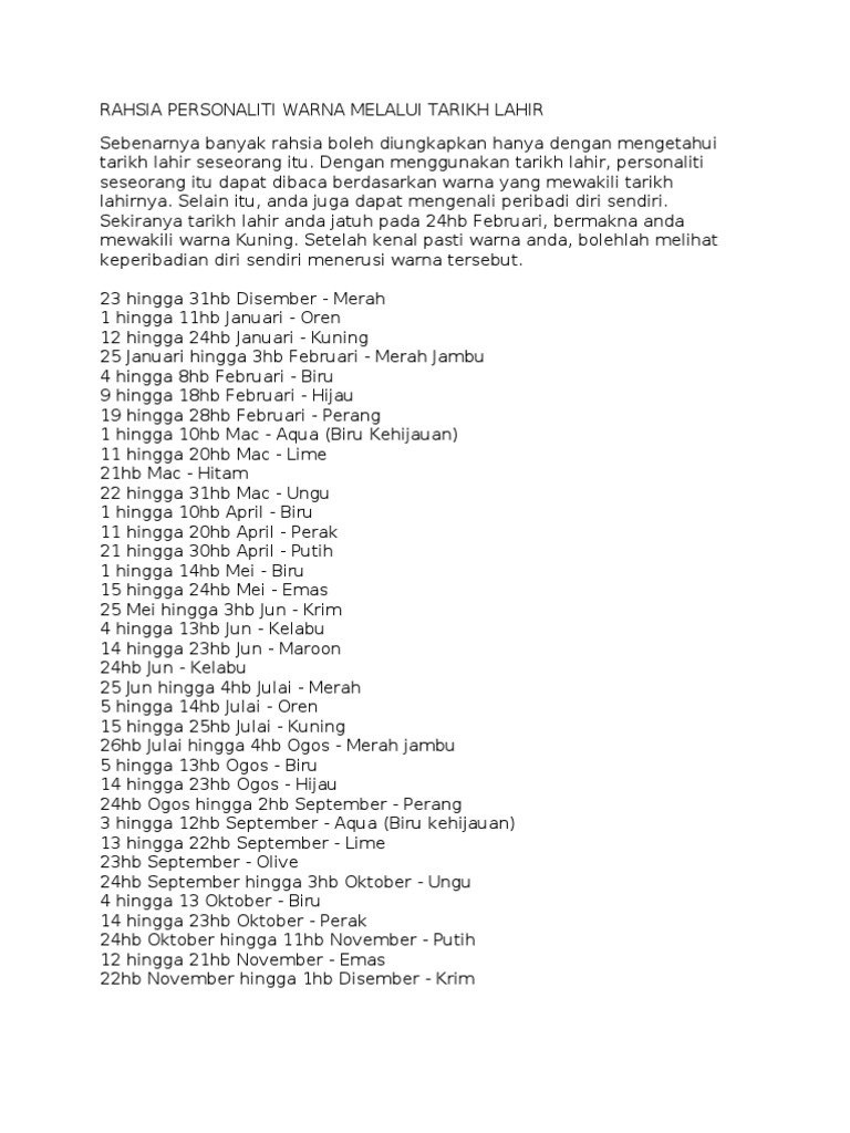 Rahsia Person Ali Ti Warna Melalui Tarikh Lahir Pdf