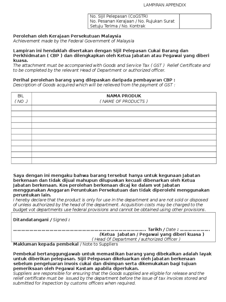 All supplies of goods and services that are made in. BORANG NYATA DI BAWAH ACKHT 1976 Mengikut peruntukan seksyen 13 ACKHT 1976 setiap orang yang melupuskan sesuatu aset yang boleh dikenakan cukai dan setiap orang yang memperoleh aset yang dilupuskan tersebut hendaklah mengemukakan borang nyata seperti berikut. Apabila Akta GST 2014 dimansuhkan anda secara automatik tidak lagi menjadi orang berdaftar CBP.