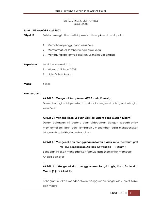 Kursus Microsoft Office Excel Kksl