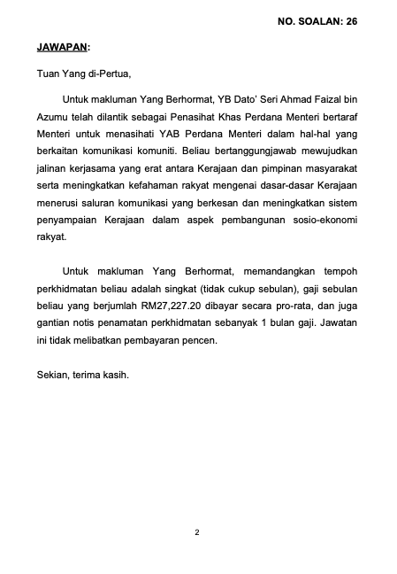 Emmanuelsamarathisa On Twitter Ahmad Faizal Azumu Earned A Full Month S Salary Of Rm27 227 20 Plus A Pro Rated Amount For The 11 Days He Served As Former Prime Minister Muhyiddin Yassin S Special Adviser Faizal